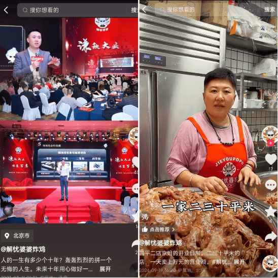 三四线城市的餐饮创业者不少是餐饮小白,解忧婆婆通过完善内部管理机制和加盟商服务,为小白提供从产品教学到选址到装修再持续运营等一系列赋能。同时,还通过商学院做持续的教学输出,让加盟商掌握线上流量转化为门店客流的方法。“得益于创始人在抖音内容创作的成功经验,我们要求每个门店都要学习短视频拍摄,门店抖音账号就是个流量接收器和放大器。”杨晓雷表示。