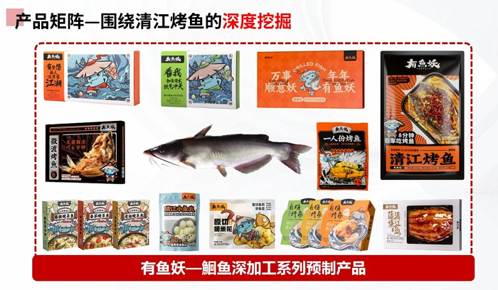 有鱼妖品牌的核心产品是清江烤鱼,以清江鱼(又称鮰鱼)为主打,成功切入半成品烤鱼这一高速发展的赛道。清江鱼以肉质细嫩、口感鲜美著称,是有鱼妖烤鱼的首选食材。品牌精选18个月自然生长的清江鮰鱼,调味酱料保留了传统工艺的醇厚口感,让消费者在家就能享受到地道的烤鱼美味。