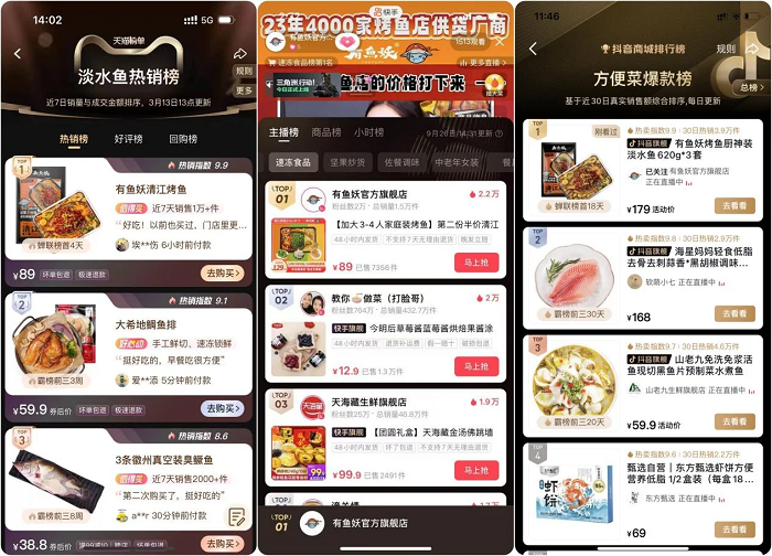 在销售渠道方面,有鱼妖烤鱼形成线上线下的销售矩阵,成功覆盖了天猫商城、京东旗舰店、抖音小店、快手小店、视频号小店、拼多多旗舰店、微信小程序商城、快团团等多个线上平台;线下,品牌入驻了合家福、华北大润发、江苏大统华、蒸小皖等线下精品商超餐饮及线上APP商城,通过直营+经销的双模式,进一步扩大了产品的市场覆盖范围。