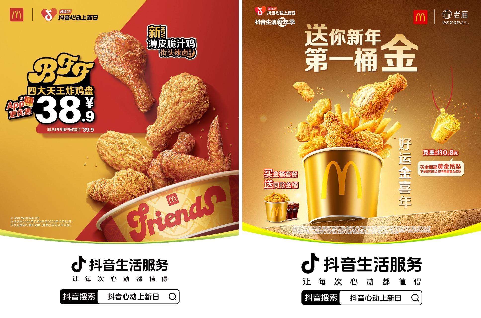 不止于表层的跨界联动,麦当劳还推出了传奇绳匠充能餐在内的多款心动美味,专为活力满满的大家量身定制,购买指定产品还附赠惊喜联动周边及游戏礼包等丰厚好礼;更有狡兔屋全员空降麦区、线下主题门店AR体验等特色玩法,拉满到店就餐的科技感与趣味性。在2025跨年节点之际,麦当劳深谙用户“求财求好运”的心理需求,联动老庙黄金推出“买桶送桶”“买堡送桶”特别活动,主打让福气加倍、好运常驻。麦当劳在年末节点的这一惊喜双重联动,旨在诚邀广大麦粉约上自己的过节搭子们,体验一场跨次元的美味之旅,解锁2025好运副本。