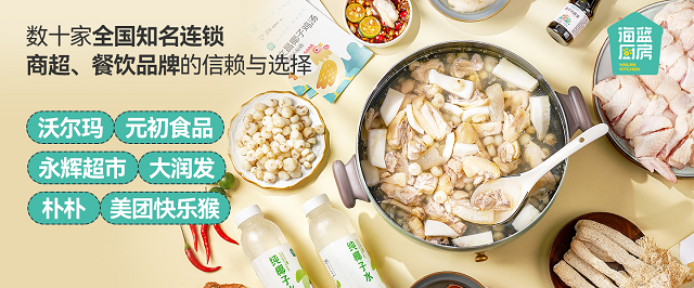 海蓝厨房对于产品品质的全链把控不仅获得广大用户的信赖,更是得到数十家国内知名连锁商超的合作选择与认可,包括与沃尔玛、大润发、永辉超市、美团快乐猴、朴朴、元初食品等品牌达成产品定制、开发、供应合作。从海南到全国市场、从电商到零售、从品牌到全产业链化企业,海蓝厨房用十多年的时间深耕产业,守护餐桌的安心美味。