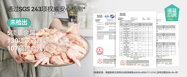 正宗的海南椰子鸡核心食材是海南四大名菜之一文昌鸡,其有肉质滑嫩、皮薄骨酥、香味甚浓的特点,海蓝厨房坚持选用高品质的、经国家地理标志保护产品认证的文昌鸡,从文昌鸡的种苗、养殖到出品进行全链科学管控,确保其肉的品质和风味体验,2026年,海蓝厨房的文昌鸡通过权威检测机构SGS243项严苛检测,包含5项重金属均未检出、130项农药残留未检出、107项兽药残留未检出,正是海蓝厨房对于食材的这份执着,收获了数百万用户的信赖,以及蒙特奖(Monde Selection)专家评审团的严格、权威评鉴认可。